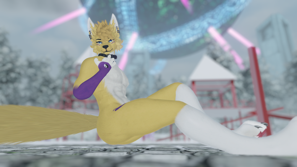 furry, fursona, vrchat, avatar, retexture, vr, vrc, textured, textures, asset, furries, foxipaws, masculine, masc, male, guy, he, dude, yellow, purple, gender fluid, fur, fluffy, mythical, fandom, canine, dog, puppy, pup, woof, fox, purple